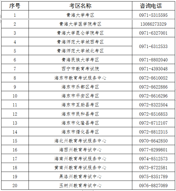 考务咨询电话:省教育招生考试院社考处 0971-6304309
