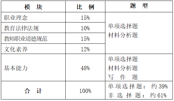 主要考查申请教师资格人员的下列知识、能力和素养: