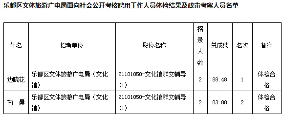 附:乐都区文体旅游广电局面向社会公开考核聘用工作人员体检结果及政审考察人员名单