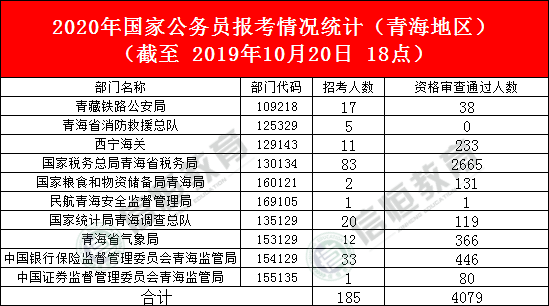 2020年国家公务员考试(青海地区)职位统计表截至2019年10月20日18点