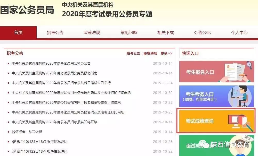 1、打开中央机关及其直属机构,2020年度考试录用公务员专题网站http://bm.scs.gov.cn/kl2020点击右侧【笔试成绩查询】