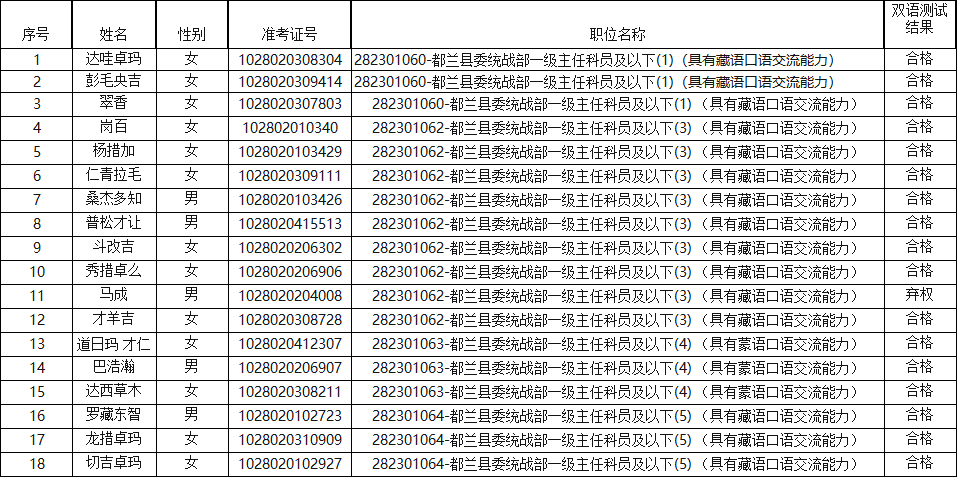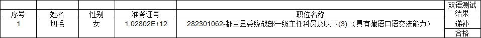 海西州2019年公开考录一级主任科员及相当职级层次以下职位公务员蒙(藏)语言能力递补人员测试结果公示