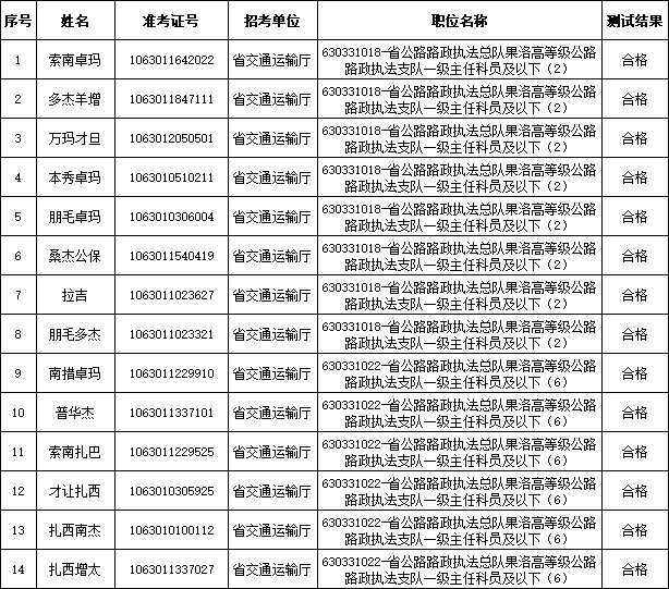 青海省交通运输厅2019年公开考录一级主任科员及相当职级层次以下职位公务员藏语口 语交流能力测试合格人员名单