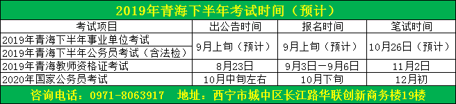 2019年9-12月各类考编考试时间表,送给各位准备考证的同学们,不要错过考试的时间哦!赶紧收藏起来吧!祝大家逢考必过,早日上岸!青海信恒教育为大家整理了2019年青海下半年考试项目,公告发布时间,报名时间,以及考试时间等相关信息,以供2019年下半年参加国家公务员、事业单位、教师招聘、医疗卫生、教师资格证、青海公务员、法检考试的小伙伴参考!(为方便查询,建议小伙伴收藏转发本文)