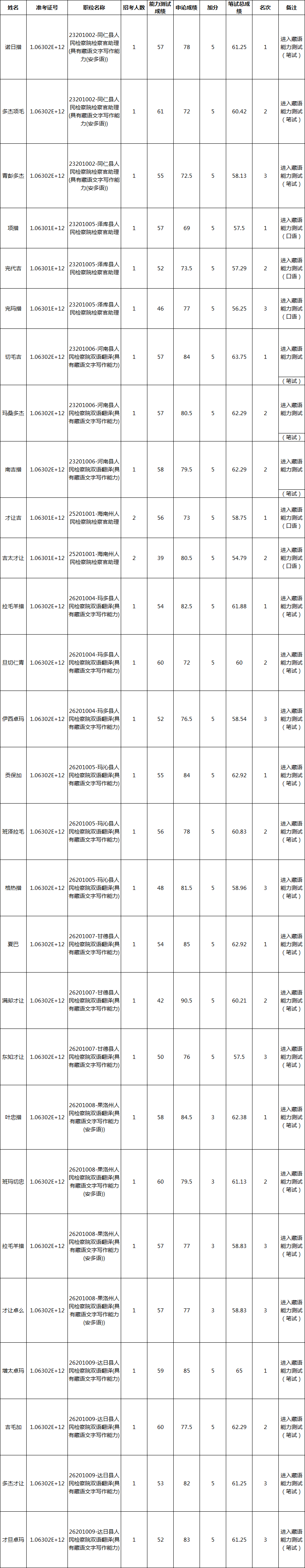 附:青海省2019年人民检察院招录司法辅助人员藏语能力测试人员名单