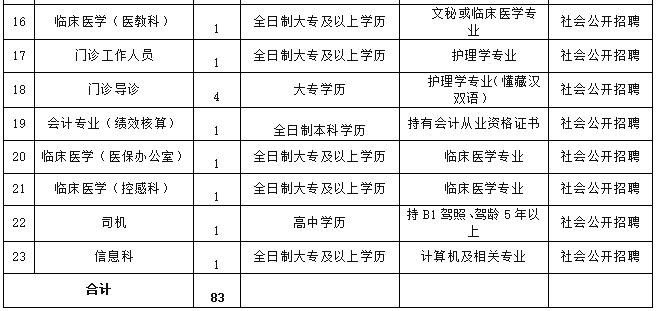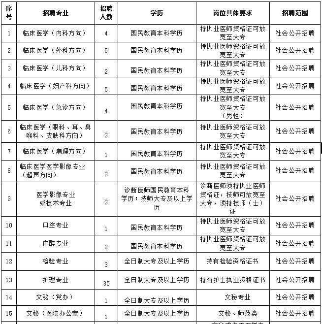 随着医院发展,医疗技术提高、医疗服务能力不断提升,就诊患者急剧增加,相继出现临床和医技专业技术人员紧缺。为了补充急需专业技术人员和工作人员,经贵德县县委县政府同意,县卫健局核准,面向社会公开招聘83名临时聘用人员,现将有关事项公告如下: