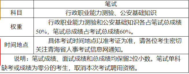 (四)体检、政审。体检、政审人选根据总成绩从高到低的顺序,按照1:1的比例确定。体检标准参照《公务员录用体检通用标准(试行)》和《公务员录用体检特殊标准(执行)》执行。政审参照青海省公安机关人民警察招录政审相关规定执行。