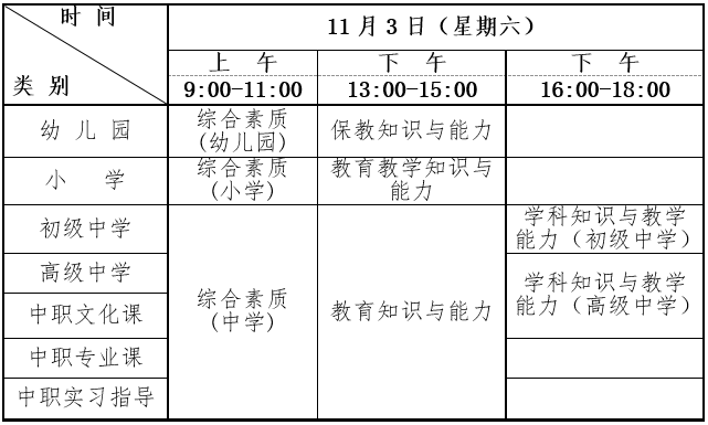 2019年教师资格证笔试时间:2019年11月3日,面试时间:2019年1月5日-6日,报名时间:9月上旬,教师资格证笔试内容如下: