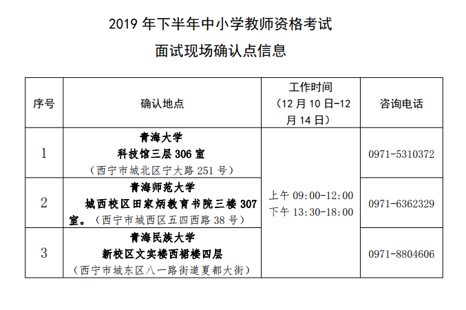 2.现场确认时间:2019 年 12 月 10 日—14 日(每日上午 09:00-12:00,下午 13:30-18:00)