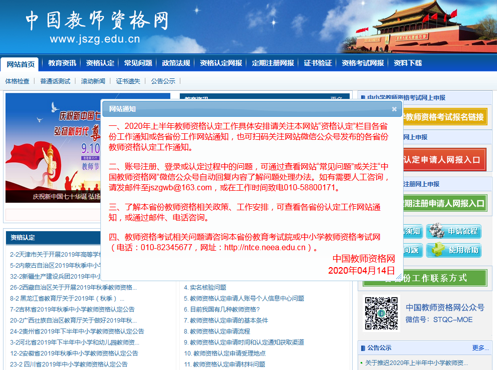 三、了解本省份教师资格相关政策、工作安排,可查看各省份认定工作网站通知,或通过邮件、电话咨询。