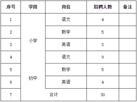 为进一步加强师资队伍建设,优化队伍结构,促进教育均衡、高质量发展,拟公开招聘中小学临聘教师30名。现将有关事宜公告如下: