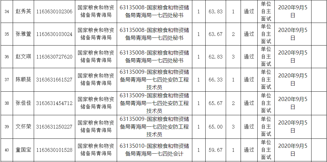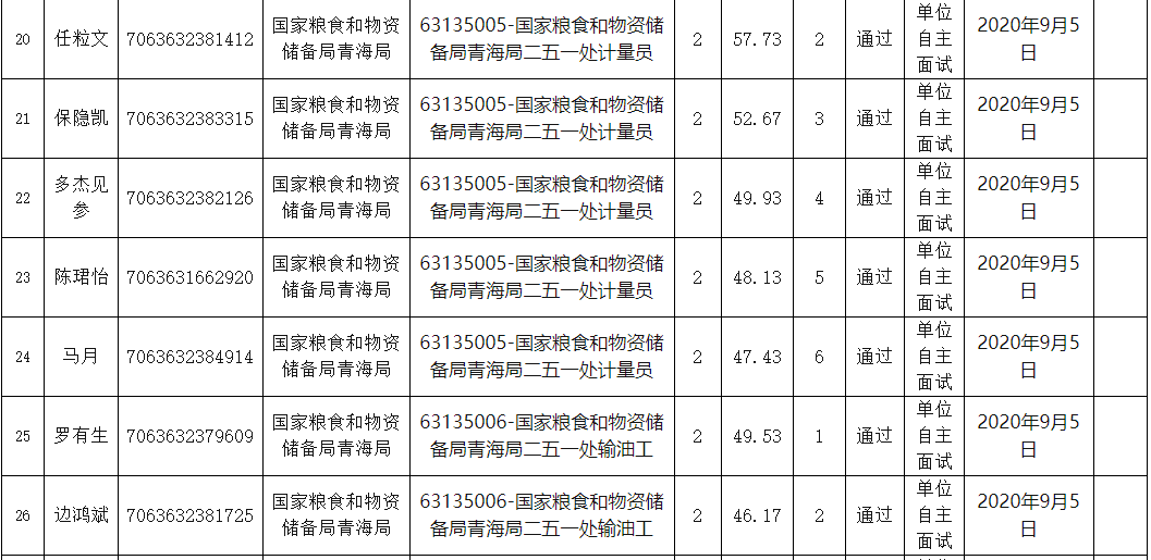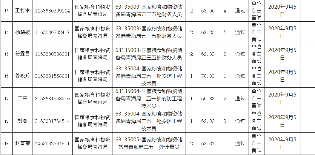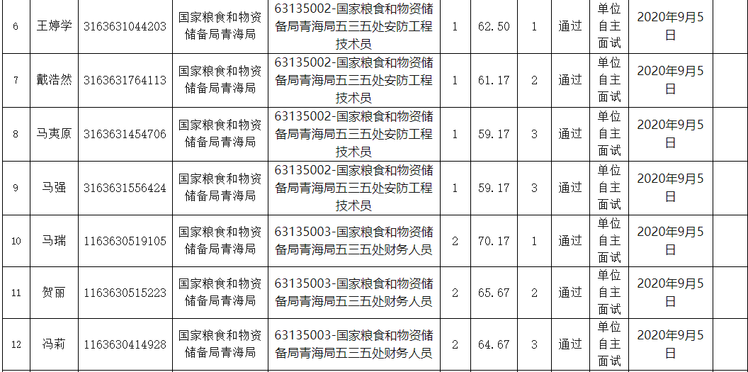 附件:国家粮食和物资储备局青海局事业单位公开招聘面试人员名单