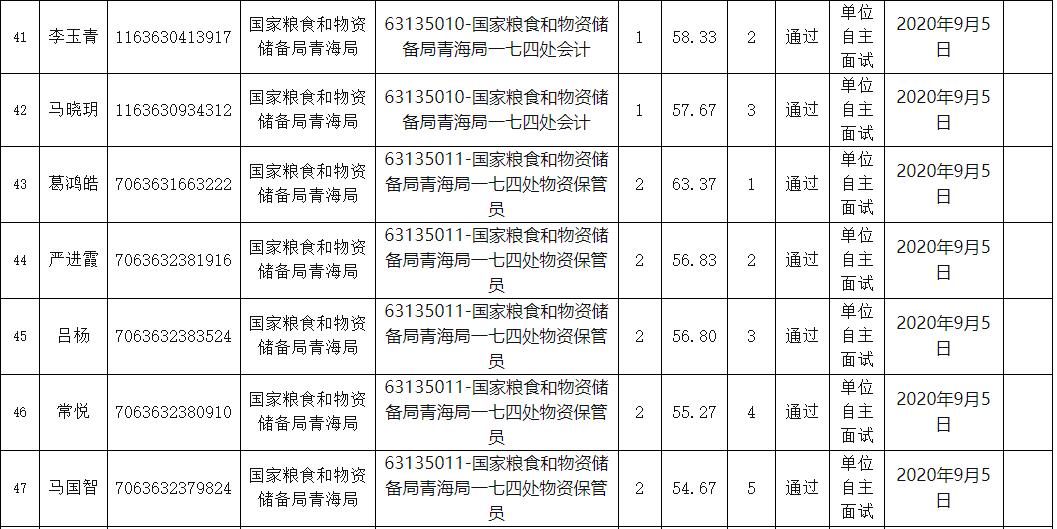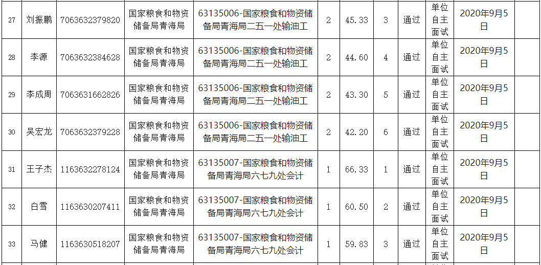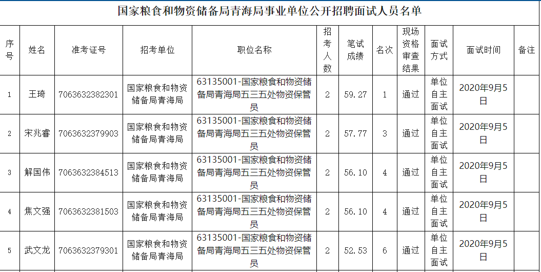 通过青海省直事业单位公开招聘笔试及国家粮食和物资储备局青海局现场资格审查合格的人员,面试人员名单详见附件。