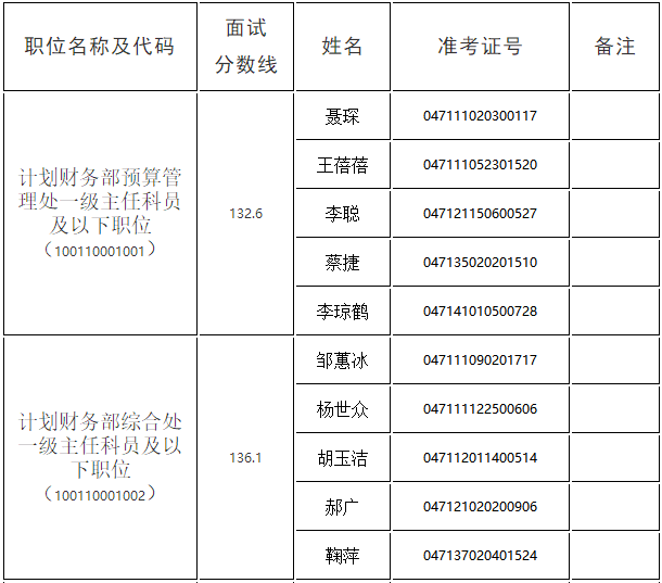 一、面试人员名单